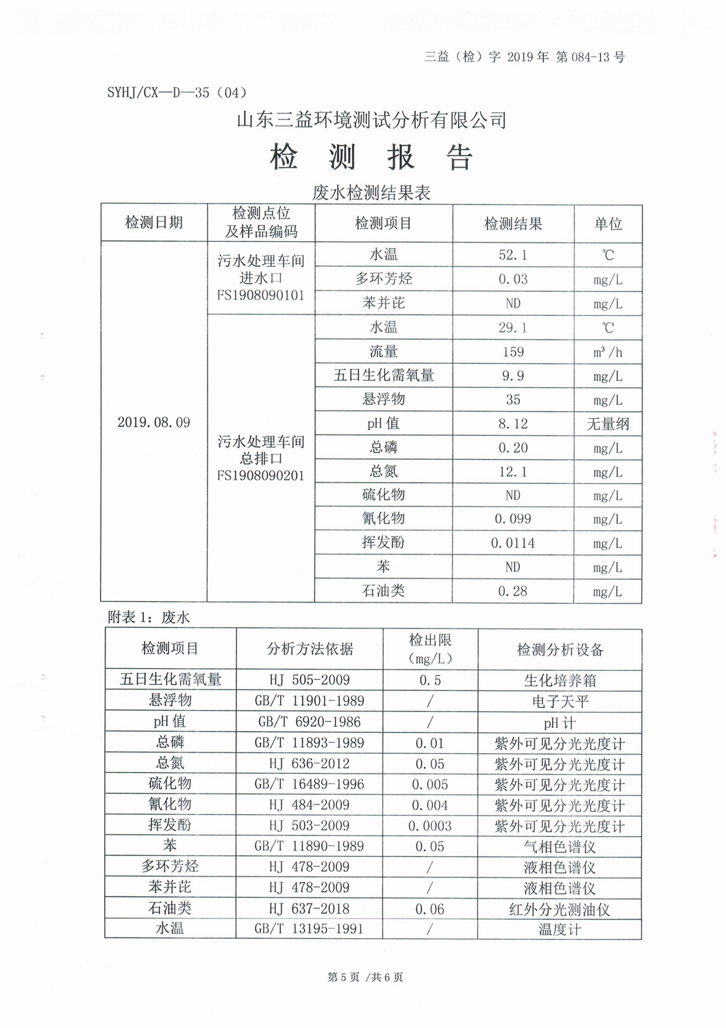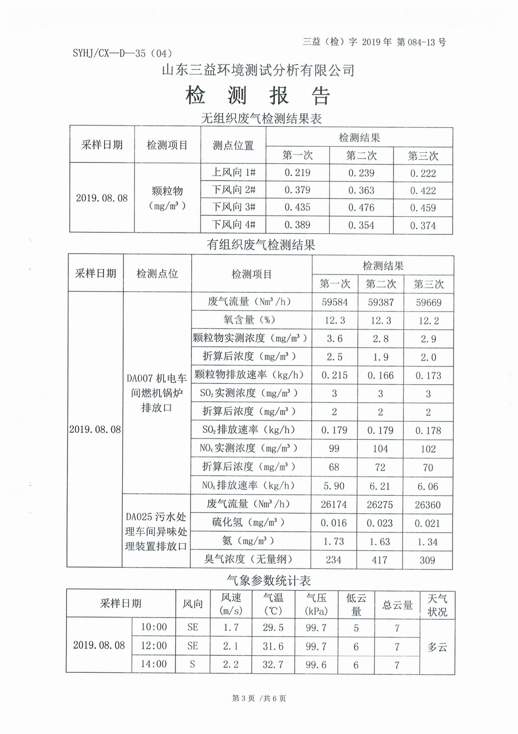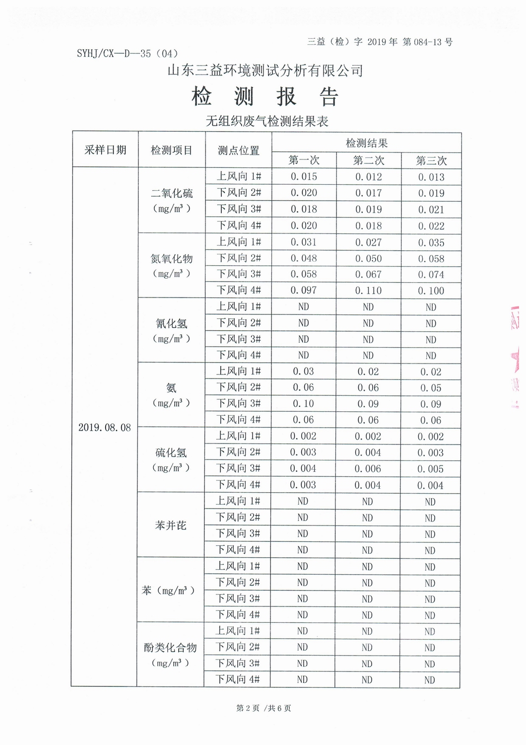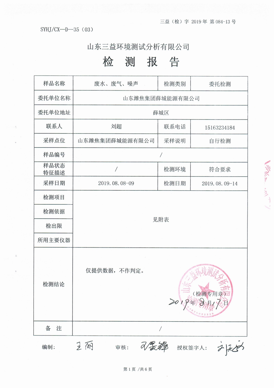 山東濰焦集團(tuán)薛城能源有限公司8月份檢測報告