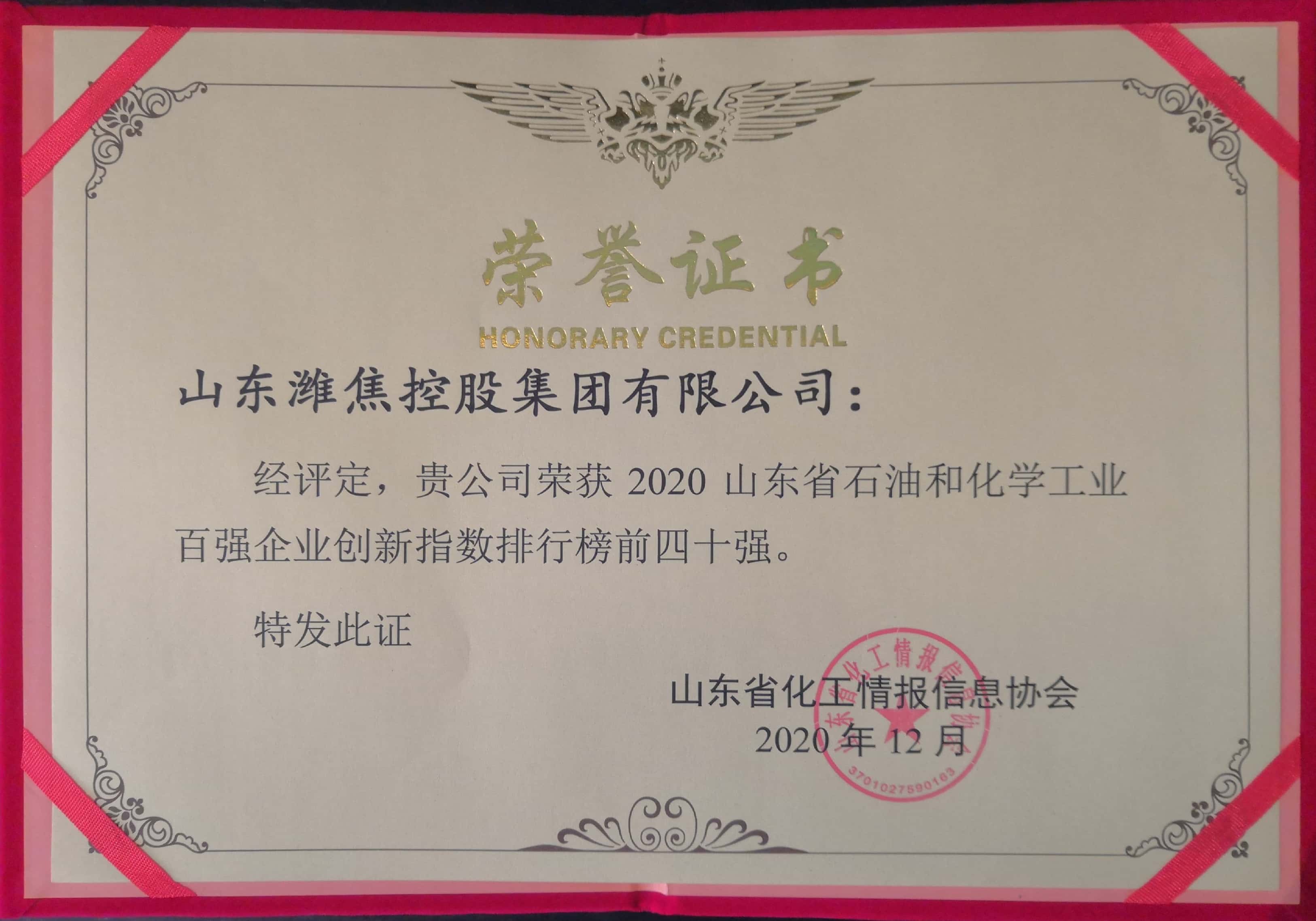 12月16日至17日,由山東省化工情報信息協(xié)會主辦的2020(第十屆)中國化工產學研高峰論壇在東營廣饒召開。會上,集團公司榮獲“2020山東省石油和化學工業(yè)100強企業(yè)”稱號,并在百強企業(yè)創(chuàng)新指數(shù)排行榜位列35位。