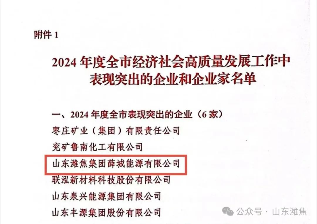4月9日上午,棗莊市委、市政府召開2024年度高質(zhì)量發(fā)展綜合績效考核總結(jié)大會,薛城能源公司榮獲“高質(zhì)量發(fā)展工作突出企業(yè)”榮譽稱號。